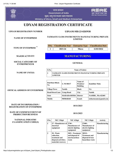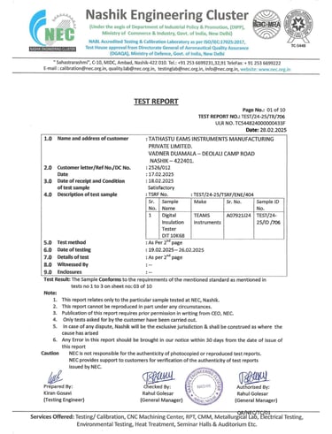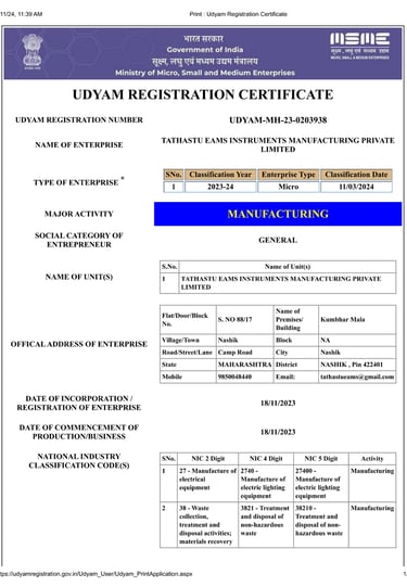 TATHASTU EAMS Instruments Manufacturing Pvt. Ltd. is in the design and manufacturing of high-precision test and measurement equipment. Founded by engineers with over 25 years of experience across diverse technical domains, the company is built on a foundation of innovation, quality, and deep industry expertise.