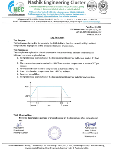 Dry Heat, Cold Test, Damp Heat Cycle, Vibration, Bump